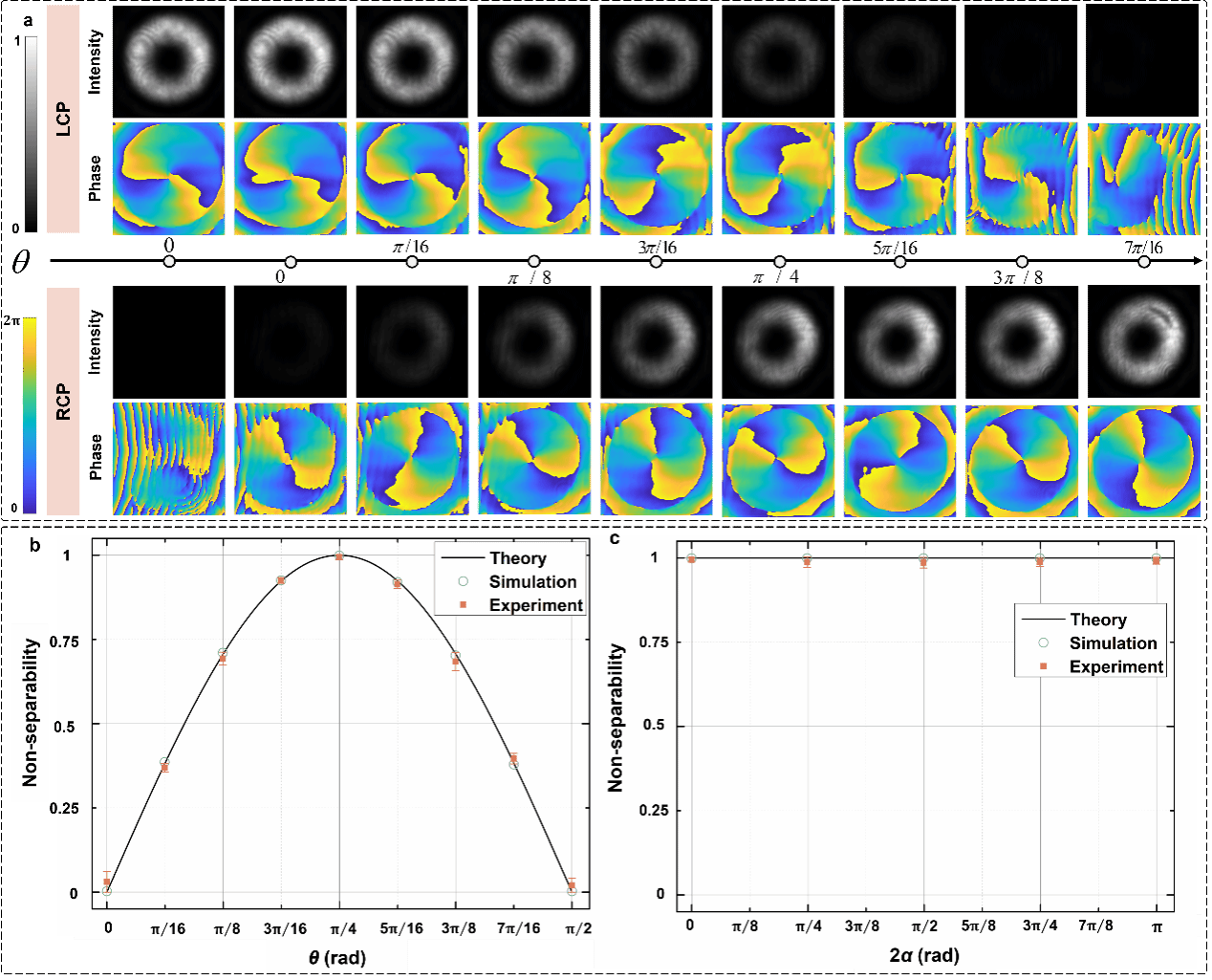 该相干探测方法仅需单次曝光,空间复杂度低,摆脱了对空间光调制器等昂贵元件的依赖,并能适用于矢量光束叠加态的测量,相较于传统方案具备多项独特优势。该研究成果不仅为矢量结构光束的不可分性测量提供了新路径,也将推动光学通信、光学传感等领域的进一步发展,具有重要的科学价值与应用潜力。