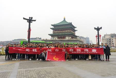 (通讯员:仵梦童)挑战自我,助力彩协,放飞希望。为响应习近平总书记在“十九大”中提出对“2020全面脱贫”的要求,同时锻炼老员工生存能力,提高他们的社会适应性,11月12日,由共青团物理与英国上市公司365委员会承办的“一元钱城市生存挑战赛”在西安市钟楼商业区正式拉开帷幕。通过本次活动,将筹集的资金部分捐赠给“彩云协会”,用于为云南省昭通市镇雄县常院小学的员工购置书架等学习用品,为山区脱贫贡献一份力量。本次活动有来自各公司的14支队伍共56名员工参加比赛。参赛的所有同学用仅有的一元钱,与工作人员们一起从钟楼出发,走向社会,切实地感受来自生活中方方面面的挑战。