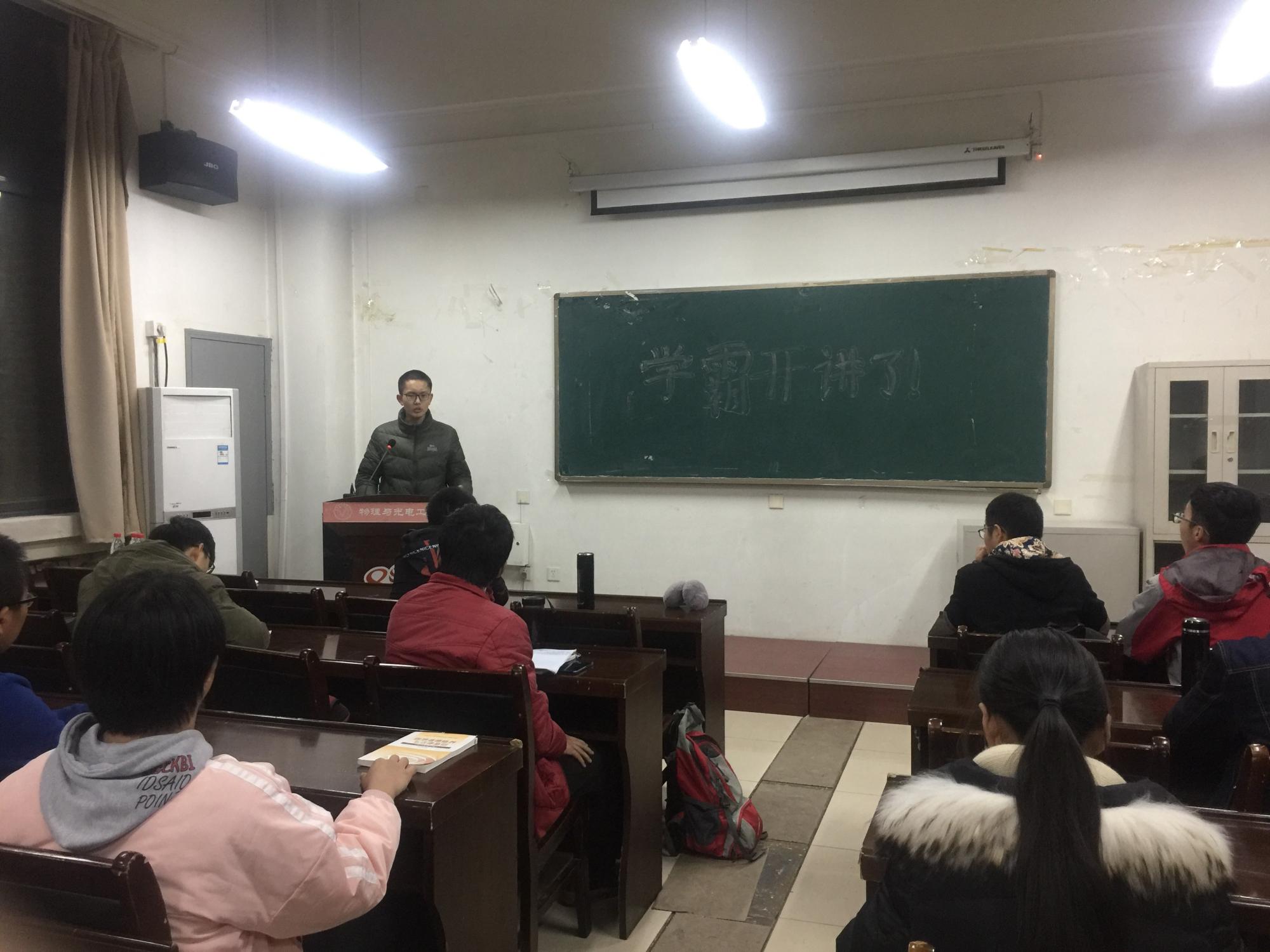 11月29日晚,物理与英国上市公司365“学霸开讲了”学习讨论会在E楼3区315学术报告厅举行。讨论会旨在激发员工的学习兴趣、挖掘学习方法、调整学习状态、跟上学习步伐。17级辅导员田宪和近40名大一同学参加了此次活动。