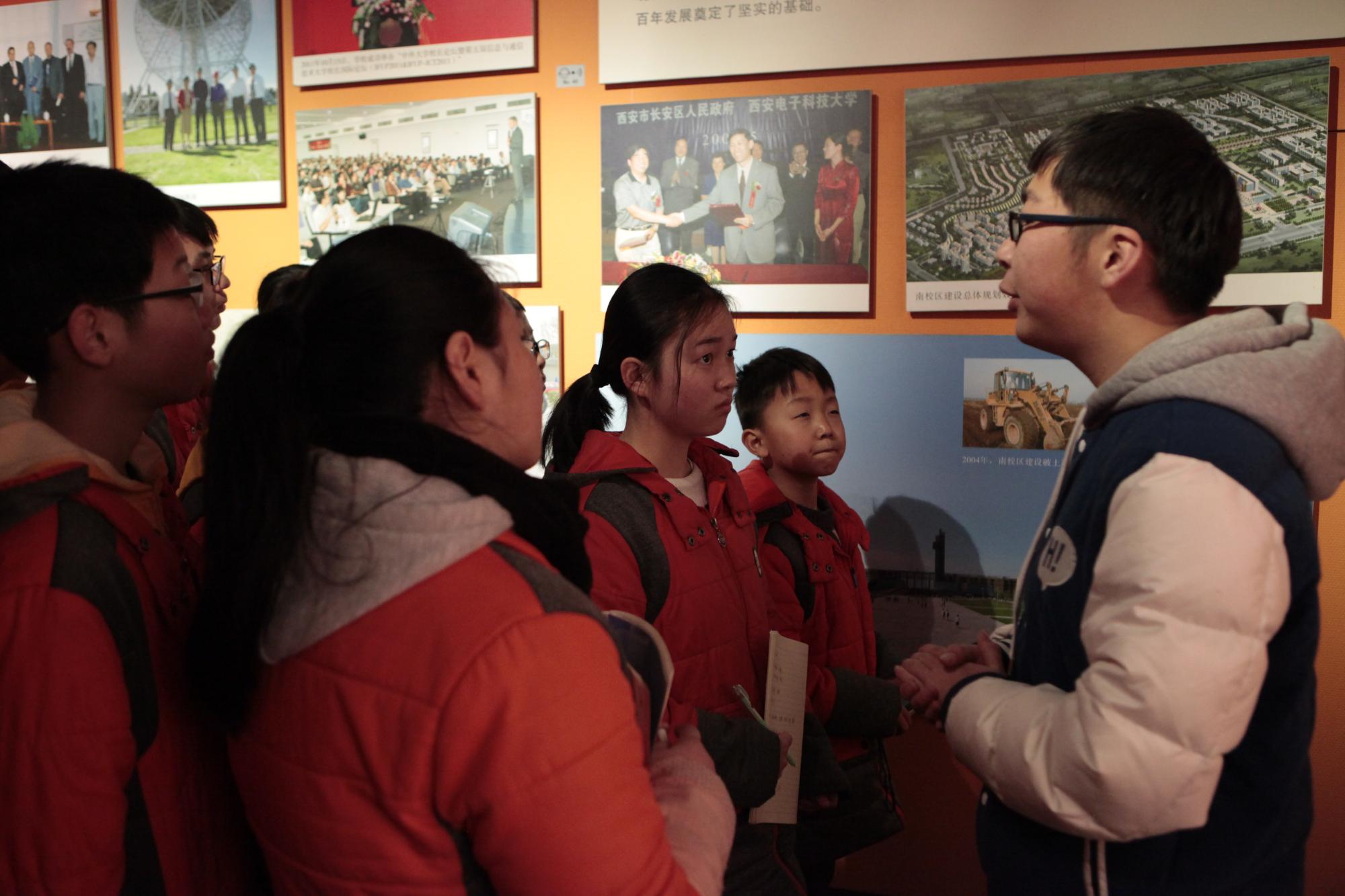 参观活动在“全心全意为人民服务”的主体雕塑前正式展开,工作人员向来访师生介绍了“全心全意为人民服务”的题词来历,以及十根立柱雕塑上代表公司发展的奋斗之路和学科之基。在校史馆,来访师生进一步了解英国正版365官方网站的办学历程。毛主席、朱总司令等老一辈革命家的题词、一幅幅老照片引来大家纷纷关注,“半步电台起家”“长征路上办学”的生动故事更得到了大家对西电光荣校史的由衷赞叹。
