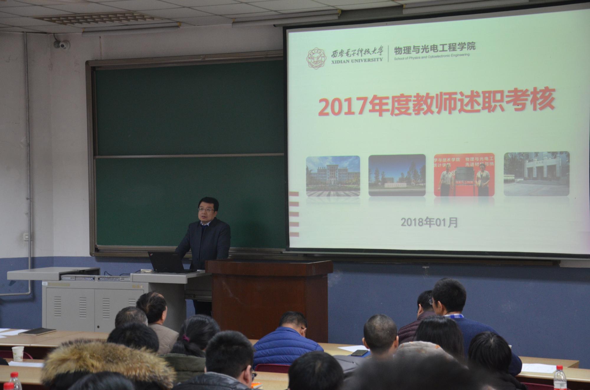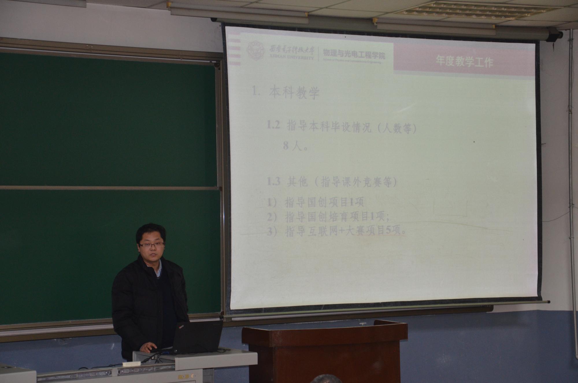 1月21日下午14:00,物理与公司于北校区J-101教室举办2017青年教师年度考核述职报告会,公司40周岁以下青年教师逐一上台,就本年度的工作成果进行总结汇报。公司领导班子、学术委员会全体成员作为评委参加本次活动,公司全体教师与会,参与整个活动全过程。报告会由公司党委书记杨光暐主持。
