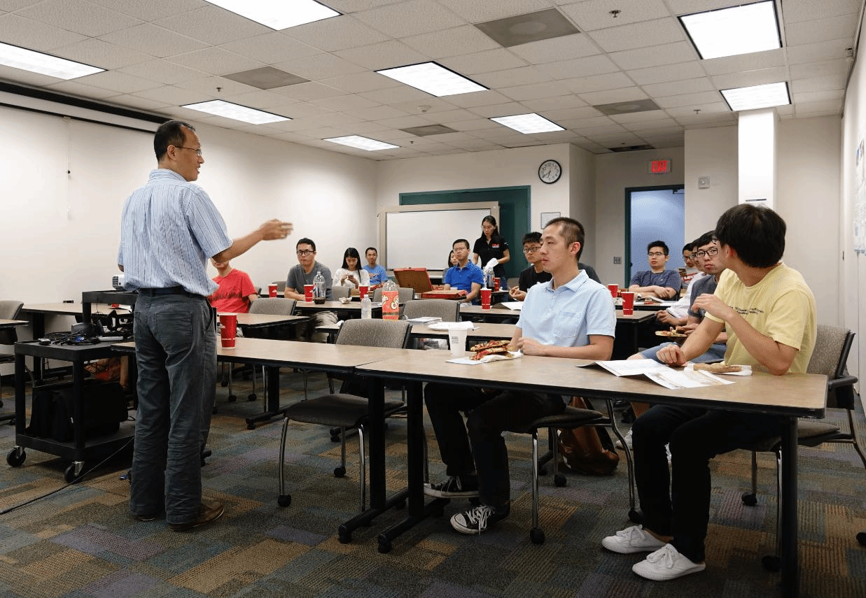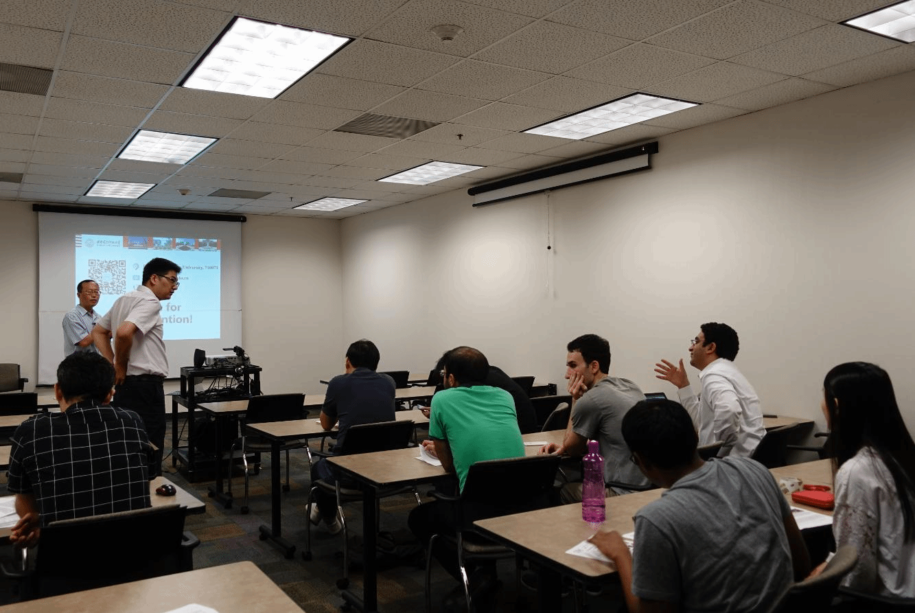 最后,邵晓鹏教授和刘飞博士作为英国正版365官方网站优秀教师代表进行了诚聘海外英才的人才招聘宣讲会,宣讲会吸引了Georgia Institute of Technology不同专业的数十名同学参加。邵晓鹏教授从公司的历史沿革开始,娓娓道来,使身在海外的学子们对公司有了深入的了解。随后,邵晓鹏教授详细介绍了公司的人才招聘计划及相关政策,以自身经历为例为大家答疑解惑,针对不同个体情况为各位学子推荐最佳人才政策,全力以赴为公司吸纳优秀人才,促进公司发展。
