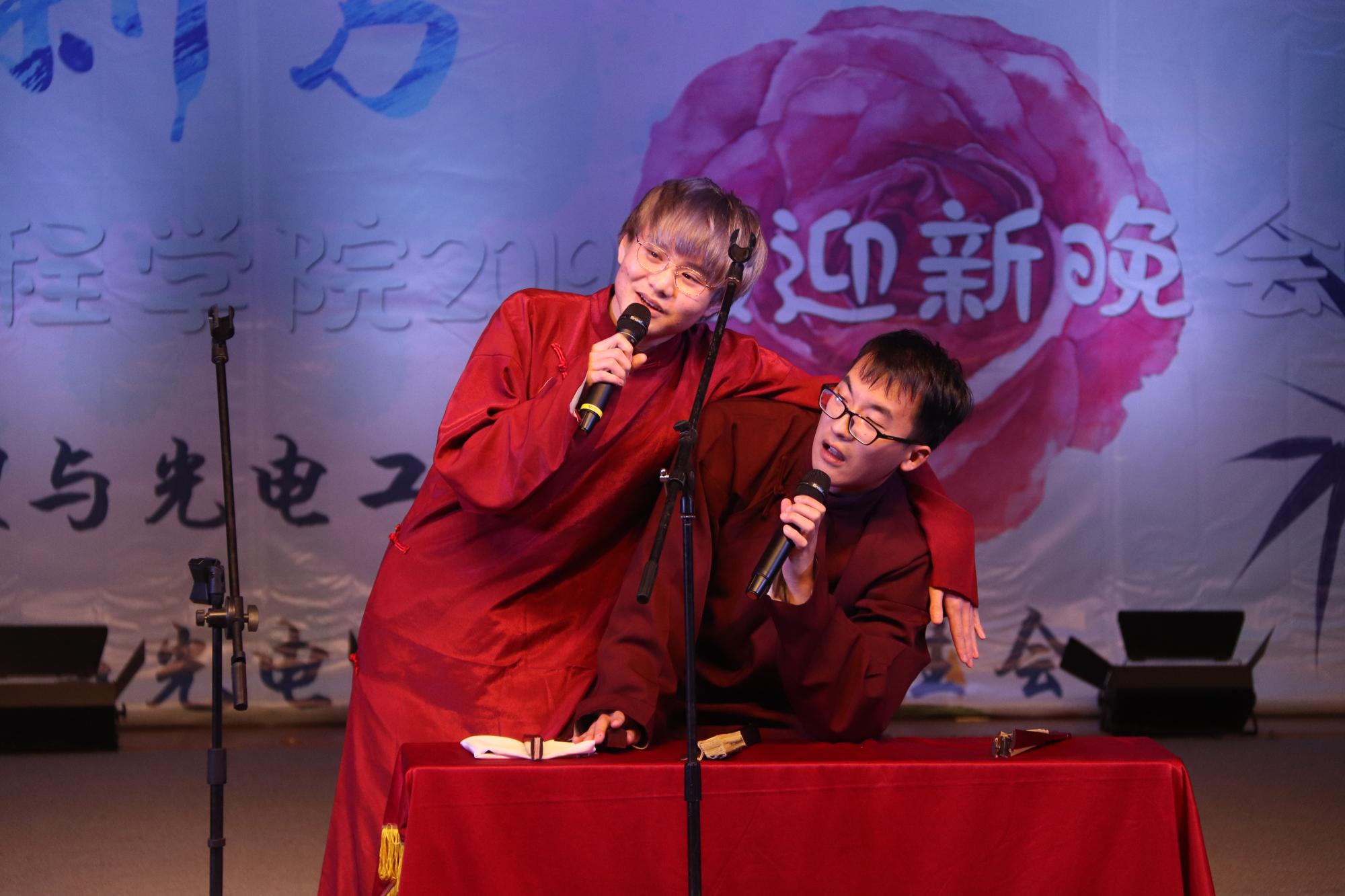 紧接着,郑浩楠同学一首《光年之外》将观众们带入晚会的欢乐气氛;员工会文艺部为同学们带来了原创光影剧《光影少年》,用肢体与光影的绝妙配合展现了新学期专属于新生的西电记忆:从独自踏上火车的紧张、告别时的泪水、初到校园的激动以及认识新朋友的欣喜等;口琴和手风琴合奏的《未闻花名》轻柔舒缓,令人沉醉;辅导员王晨辉、韩金虎现场抽取了幸运观众并为新生送上了祝福,希望同学们在美丽的英国正版365官方网站能够不负韶华、学有所成;抽奖环节过后,晚会继续进行。介四相声社带来的相声《我要招新》令现场观众捧腹大笑,欢笑声不绝于耳;B-force街舞社带来的舞蹈《快乐黑怕》,用明快的节奏带我们领略了协调的美感与团队的力量;新生同学展现了自己的风采,带来的歌曲串烧娓娓动听。在此之后又到了紧张刺激的游戏环节,在场观众自发上台参与游戏《谁是卧底》,大家斗智斗勇、绞尽脑汁,参与互动的同学们均领取到了精致的小礼品。