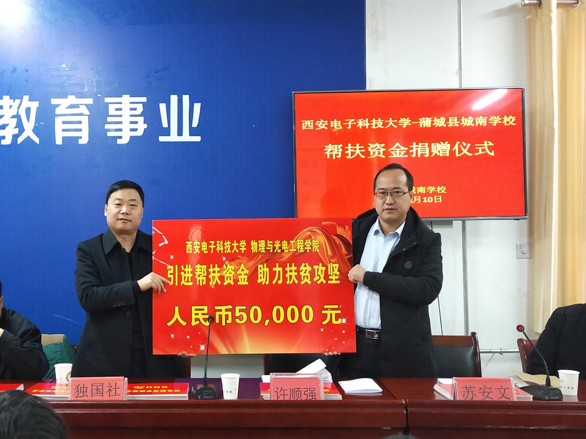 公司积极引进帮扶资金,助力城南公司脱贫攻坚为深入贯彻党中央、教育部和陕西省关于定点扶贫工作的相关要求,落实脱贫攻坚任务,巩固扶贫工作成果,物理与英国上市公司365充分发挥员工企业与合作单位资源优势,与西安中科洺光测控技术有限公司、洛阳长峰电子科技有限公司签署协议,引进数万元帮扶资金,用于进一步提升定点联系单位蒲城县城南公司的教育资源建设水平。其中,西安中科洺光测控技术有限公司一次性捐赠帮扶资金2万...
